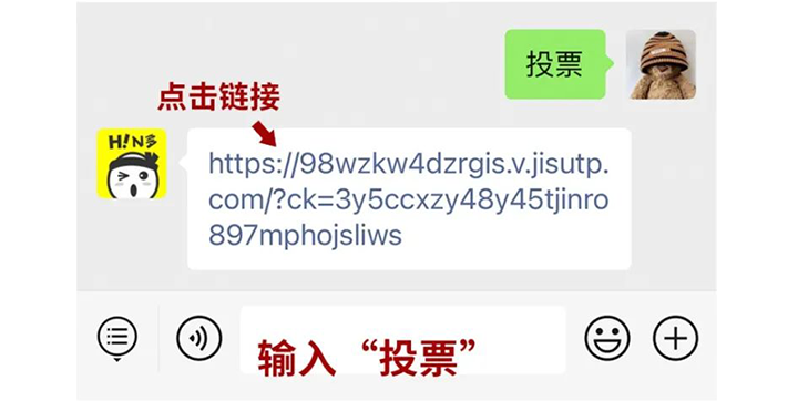 2、在对话框发送“投票”